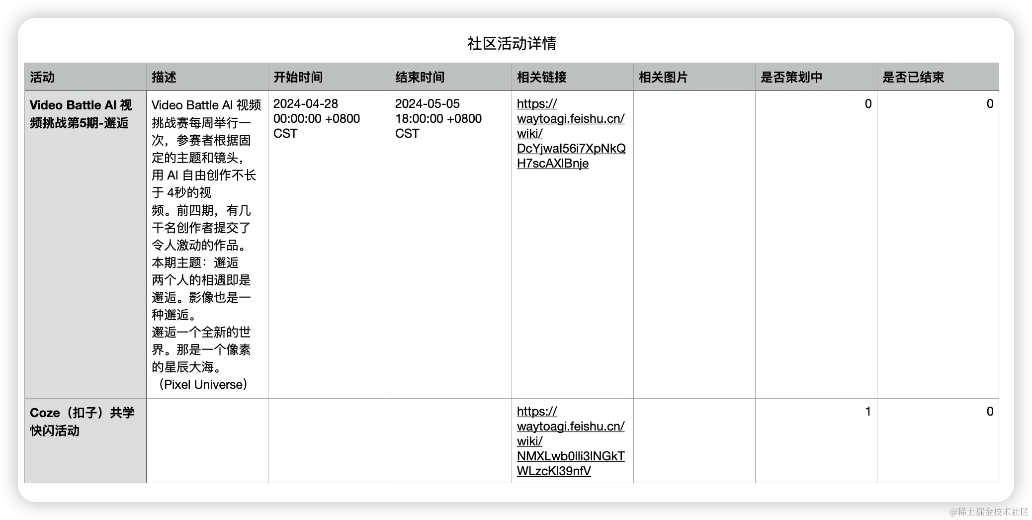 本着想直接在 Bot 界面添加这个活动知识库来直接查询对应的结果给用户,才发现知识库鉴于 Bot 层面的知识库检索策略问题,总是给我不全的检索结果,尤其是查询进行中或者已结束的活动时,总是把所有活动都给我返回,这显然不合理。怎么办呢?