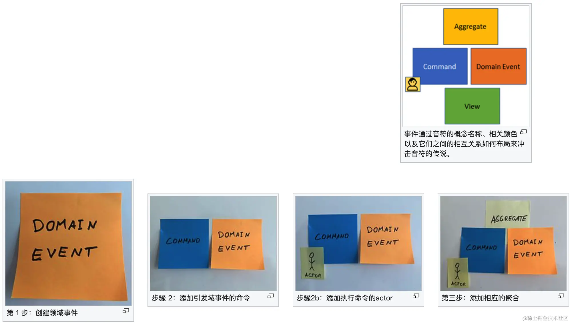 - 红色 - 业务流程,用于串联决策命令到领域事件,所实现的业务流程。一些简单的场景则直接有决策命令到领域事件就可以了。
