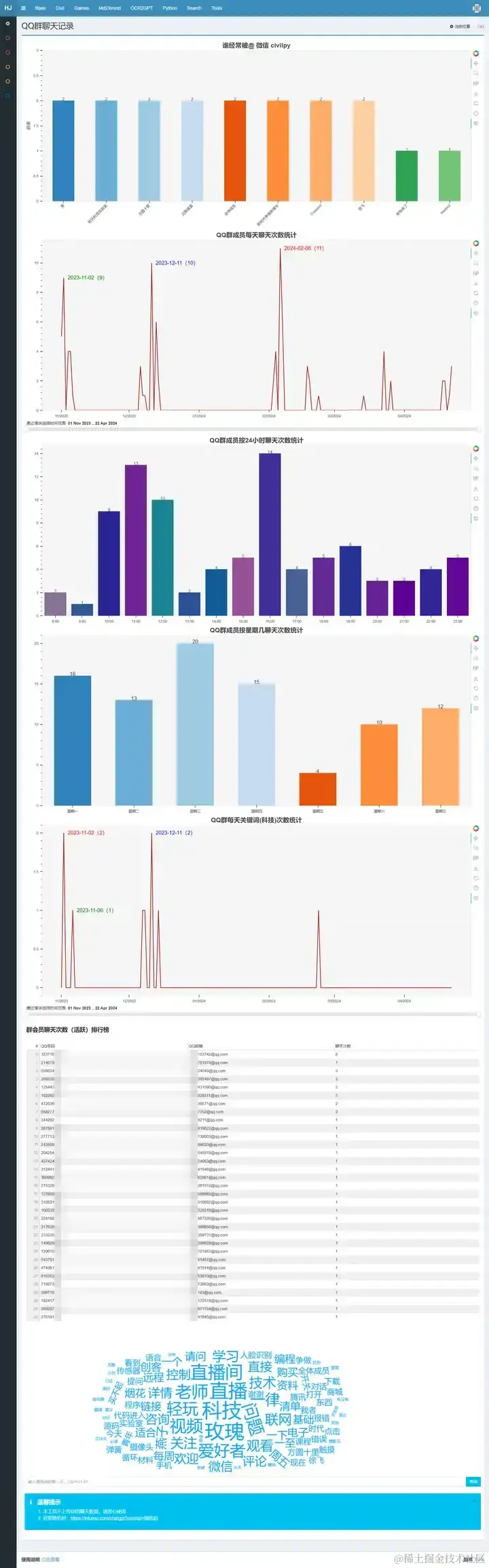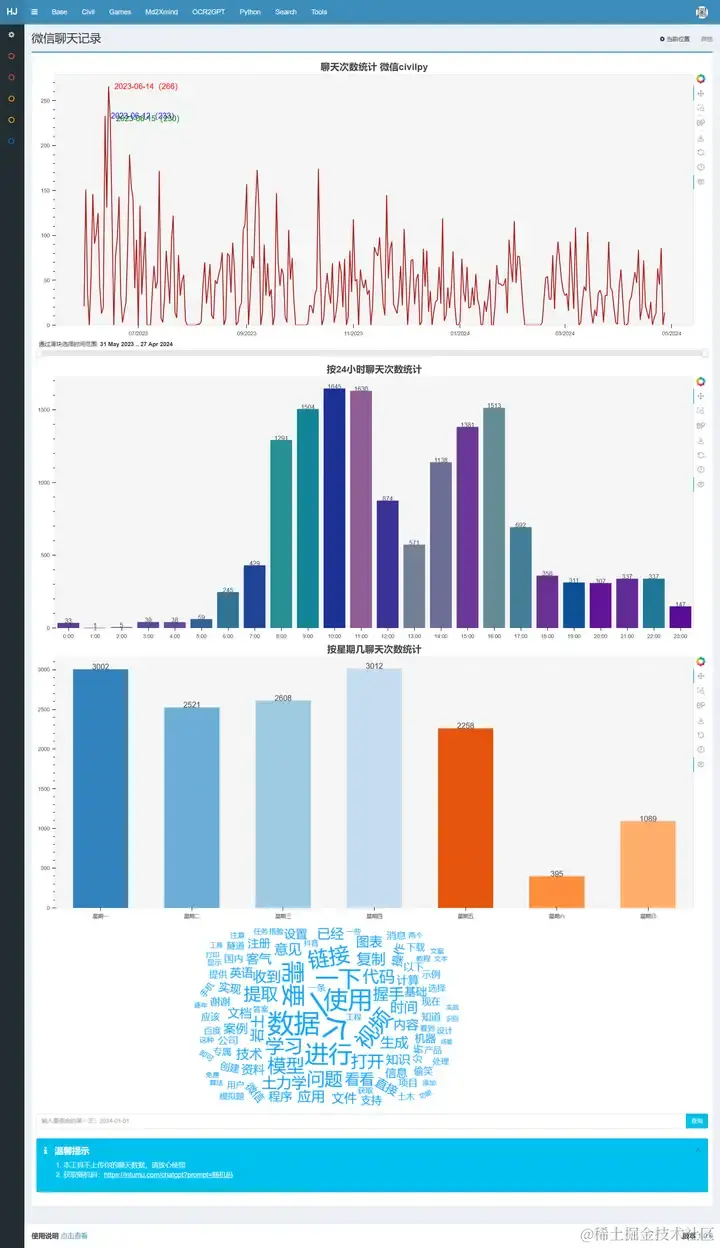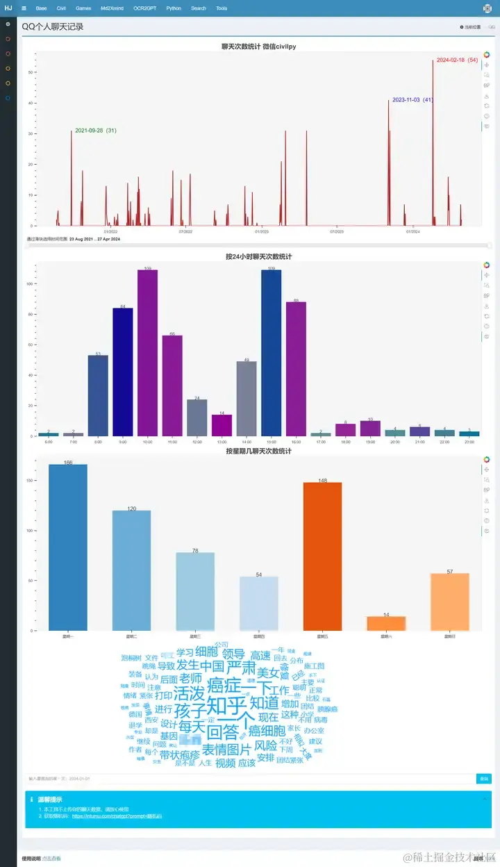 (2)数据可视化分析QQ、微信聊天记录,提取某一天的聊天记录与大模型对话。