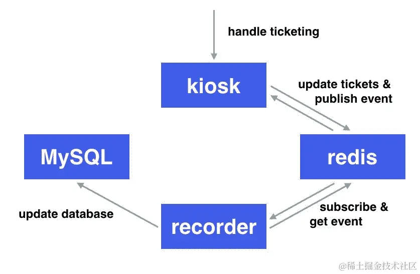 录音机需要访问 Redis 和 MySQL。它使用通过秘密注入的根凭据。Redis 和 MySQL 的两个端点通过服务 DNS 名称<service_name>.<namespace>访问。