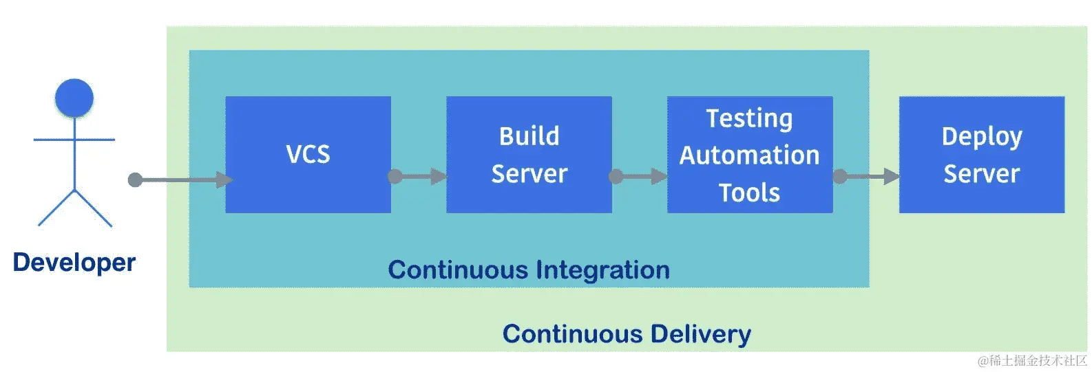 CI 不仅有助于开发人员和质量保证人员提高质量,还有助于缩短应用程序或模块包的归档周期。在电子交付给客户的时代,CI 已经远远不够了。然而,因为交付给客户意味着部署到服务器。