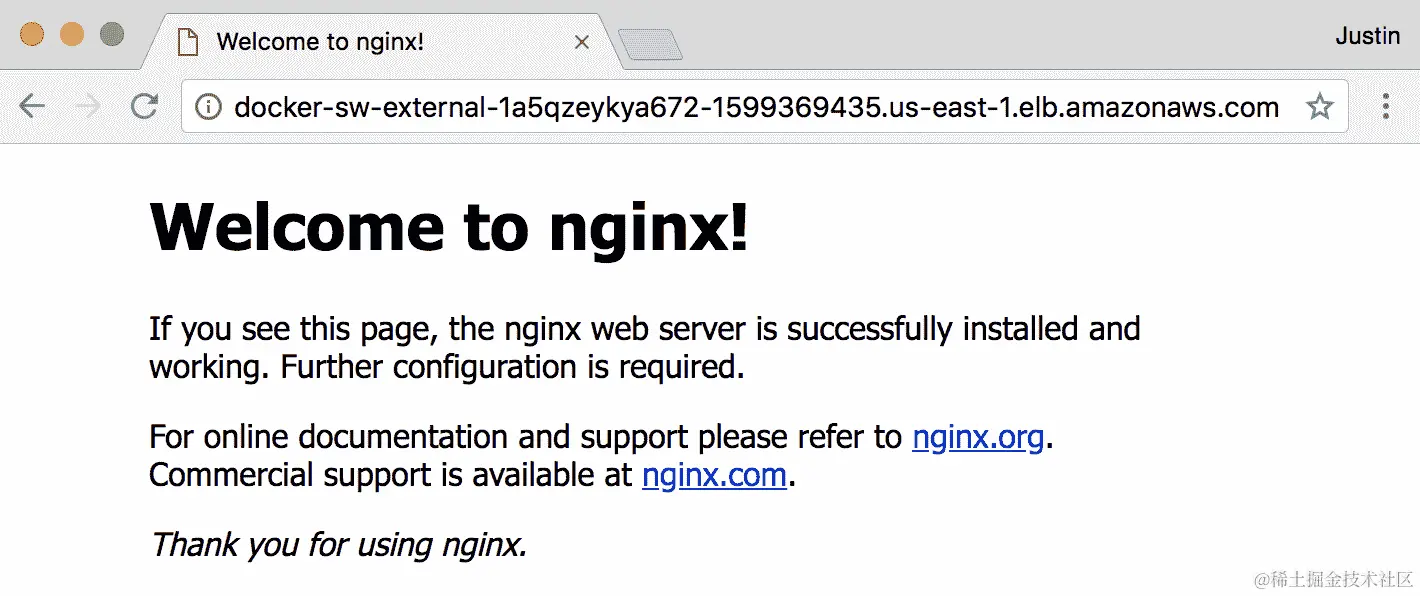 外部负载均衡器: 创建了一个经典的弹性负载均衡器,用于发布对您的 Docker 应用程序的公共访问。