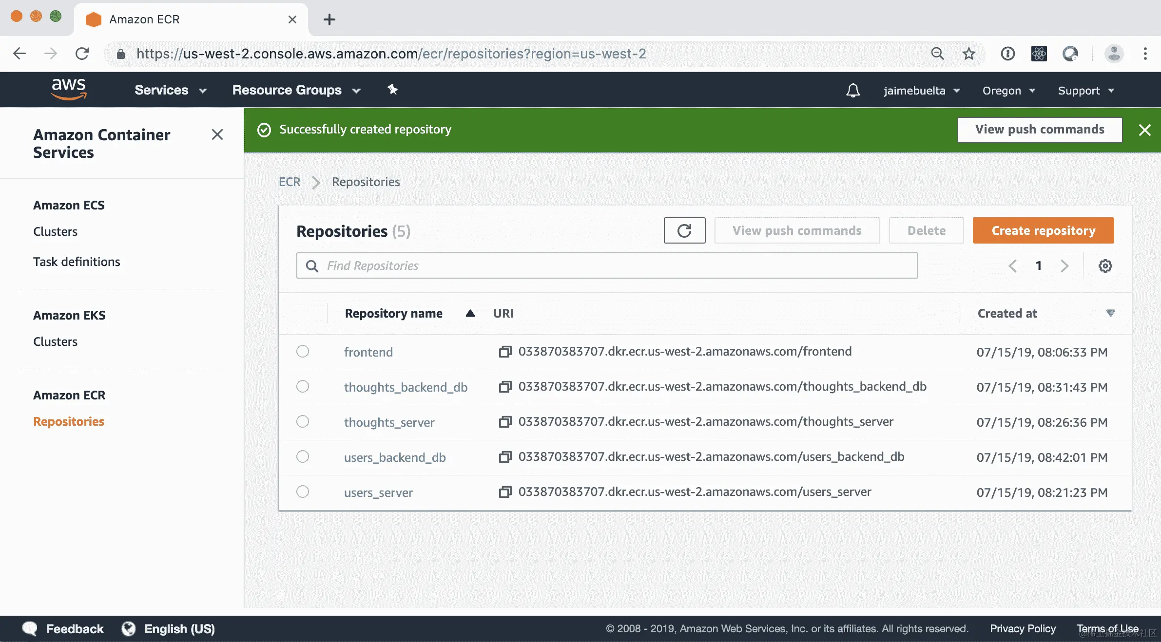 有没有什么操作需要您执行才能推送到 AWS Docker 注册表?