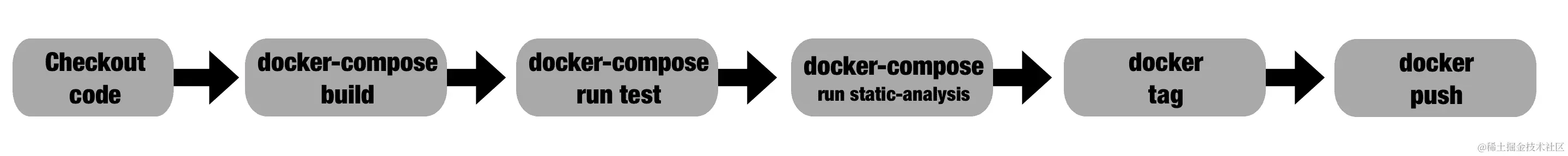 请注意,我们不一定需要创建一个运行整个构建的单个步骤;它可以是几个 Docker 命令,甚至可以使用不同的镜像。但要求是它们都包含在 Docker 中,这是运行它所需的唯一软件。