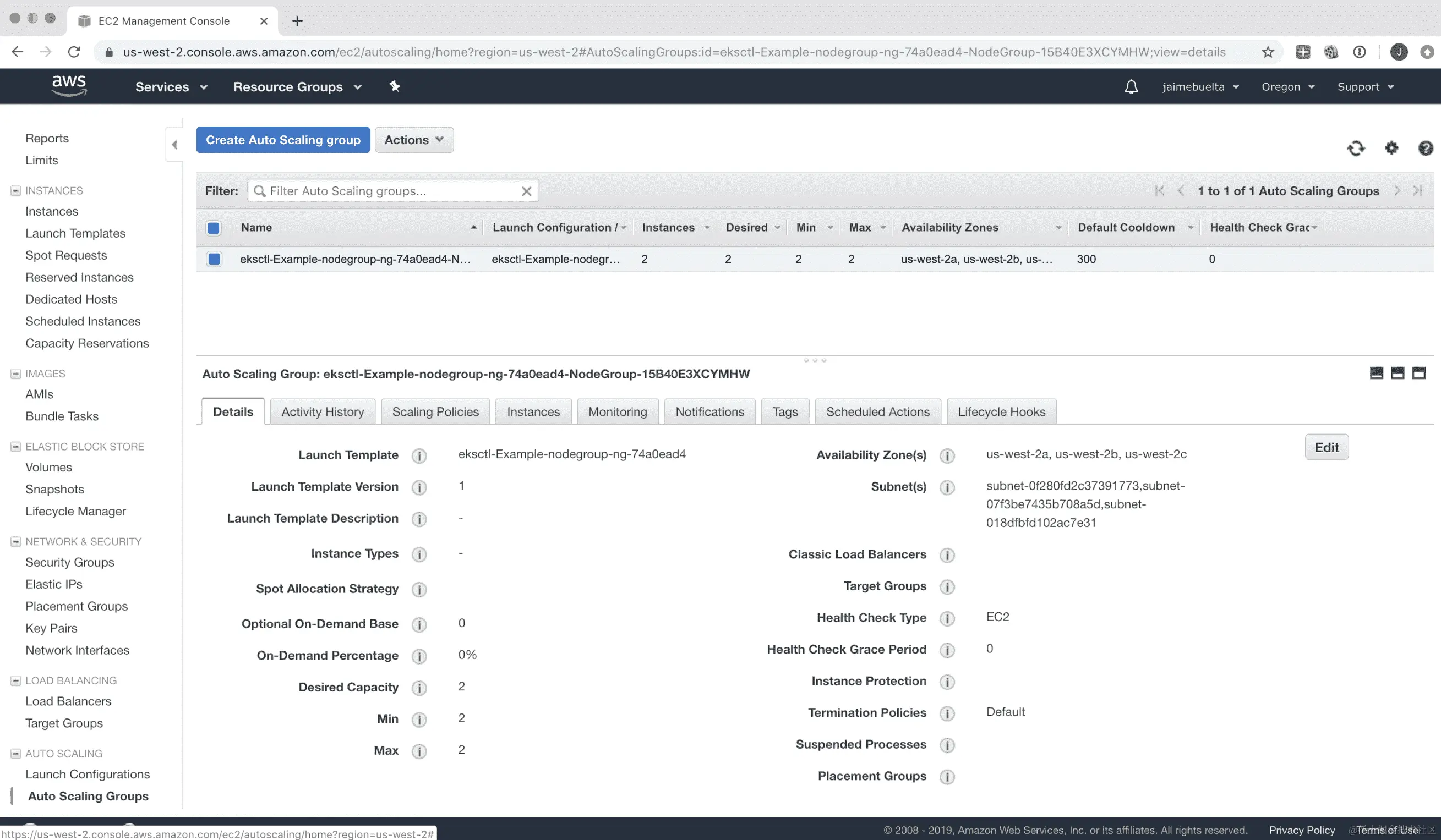 这个节点组也可以在 AWS 控制台中看到,在 EC2 | 自动缩放组下: