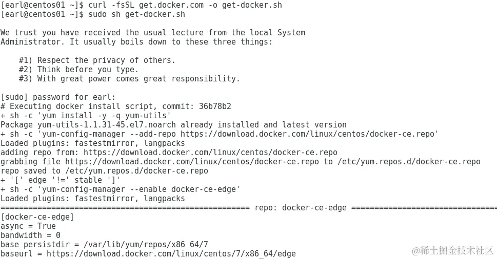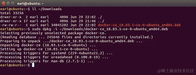 现在开始有趣的部分...我们将安装 Docker CE。要这样做,请输入以下命令: