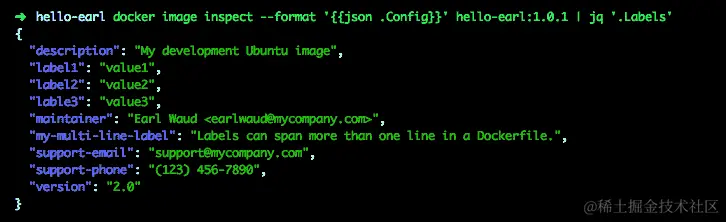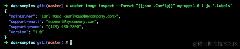 检查生成的my-app镜像,我们可以看到ONBUILD指令中提供的 LABEL 命令被发送到未来,到达my-app镜像: