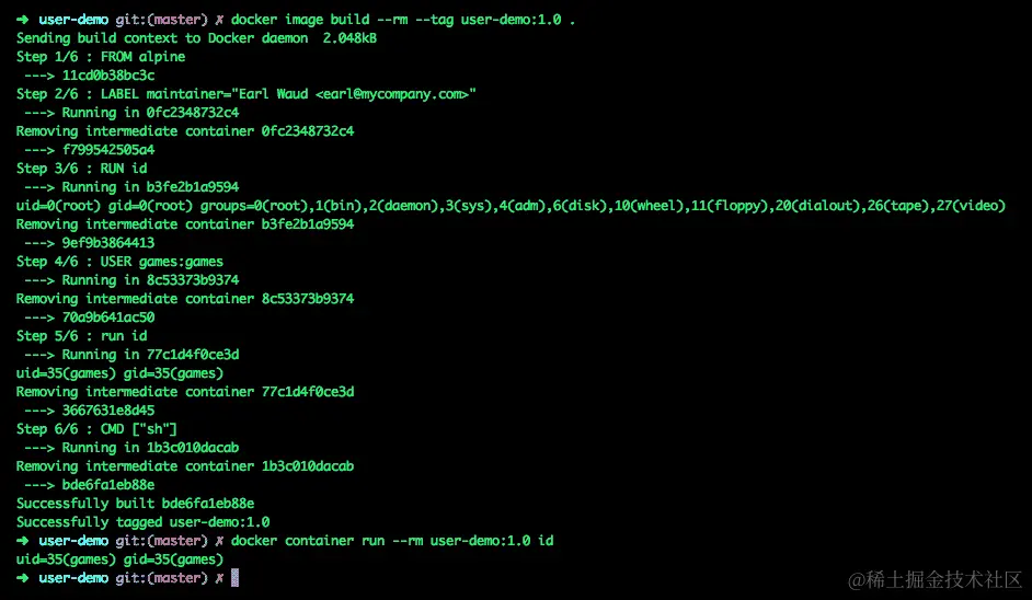 docker image build --rm --tag user-demo:1.0 .