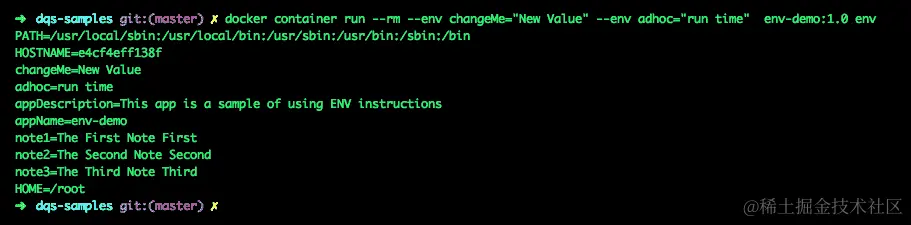 使用上述 Dockerfile 构建的镜像运行容器如下: