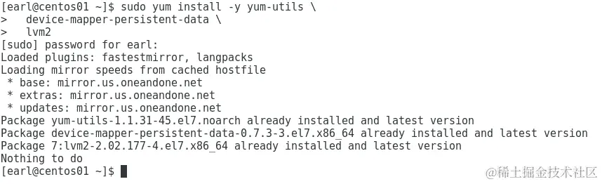 这将确保我们在系统上安装了yum-config-manager实用程序和设备映射器存储驱动程序。如下截图所示: