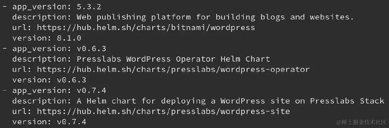 输出将是一个空表。您还可以通过尝试使用kubectl来获取 WordPress 部署来确认该发布不再存在: