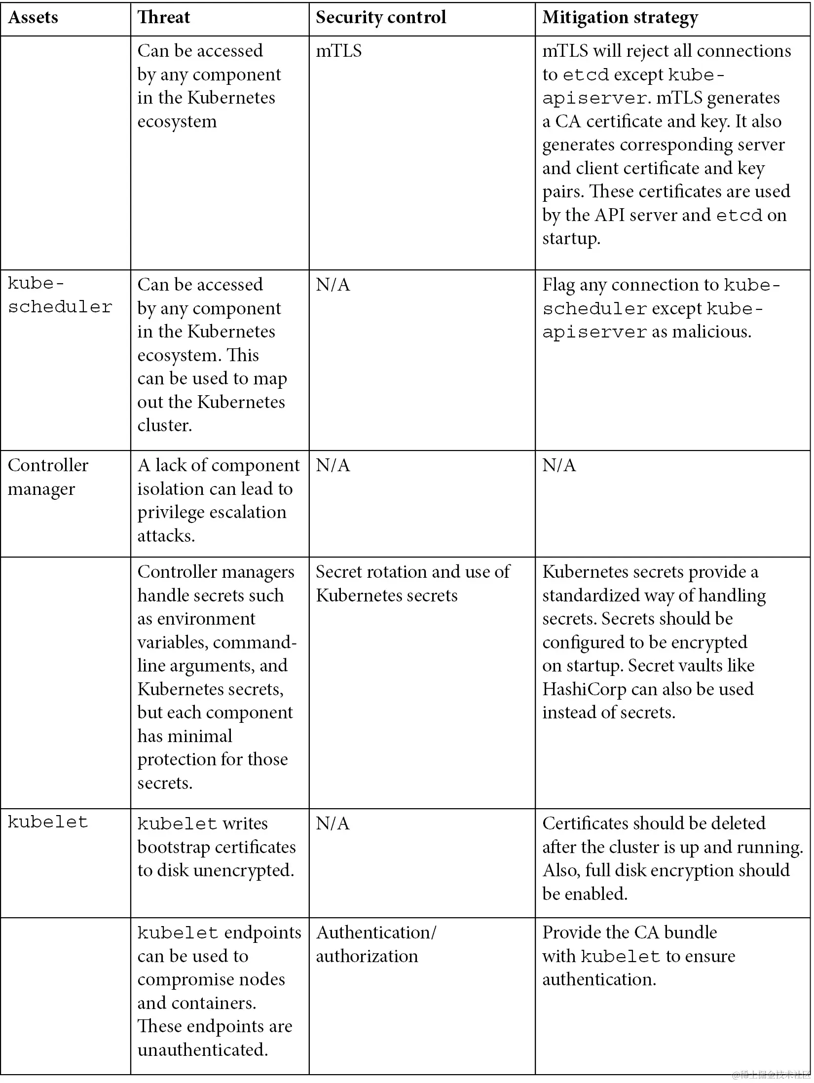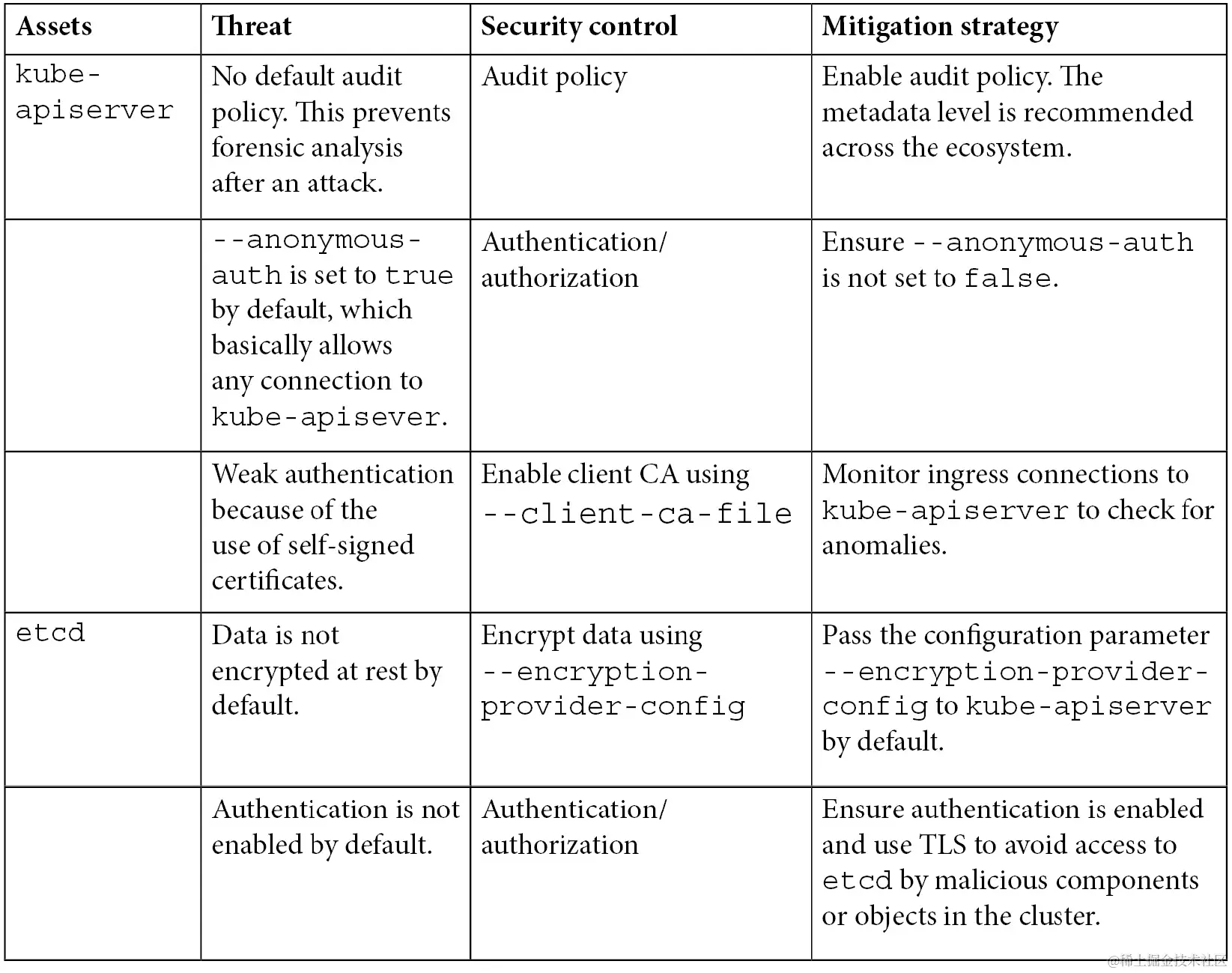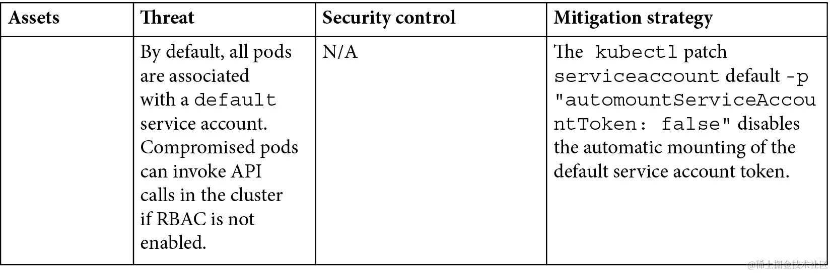 【第三章】讨论了 Kubernetes 中的重要资产、威胁者以及如何为部署在 Kubernetes 中的应用程序进行威胁建模。