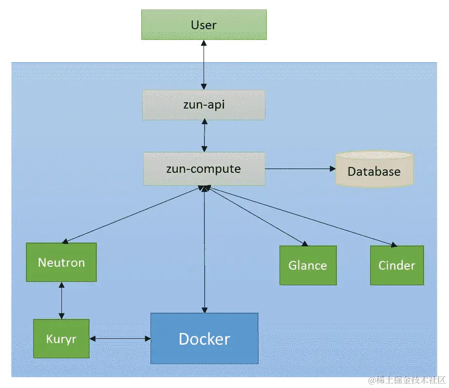 用户可以使用 Zun 直接在 OpenStack 上部署他们的容器工作负载,而不使用 COEs。Zun 提供完整的容器生命周期管理支持。它还通过 Kuryr 提供 Docker 网络支持。这意味着用户可以使用 Neutron 网络来处理他们的容器和虚拟机工作负载,并在其中相互访问。Zun 还为容器提供了 OpenStack Cinder 支持,用于持久存储。Zun 具有内置的多租户能力,并使用 KeyStone 进行身份验证支持。