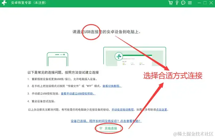 步骤1:下载并安装完成后,按照提示在手机上安装相应软件,然后使用合适的方式连接手机和电脑。