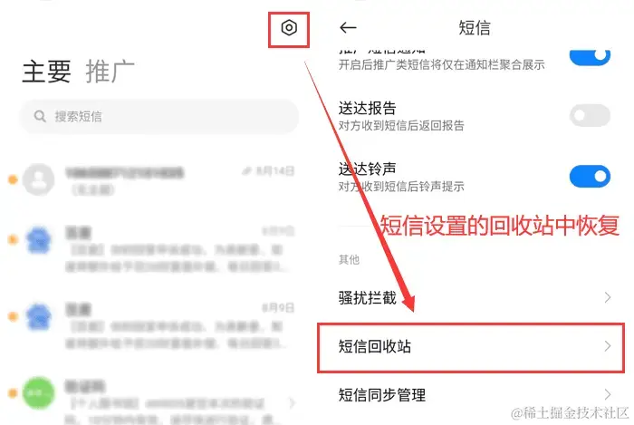 方法一:通过回收站找回短信