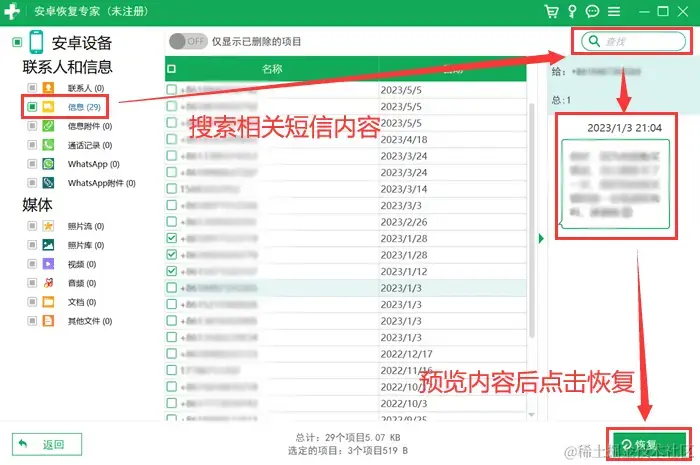 在恢复数据前,务必先确认要恢复的数据类型和位置,避免误删其他重要数据。使用第三方工具时,务必选择安全可靠的工具,并按照提示正确操作。恢复数据后,务必检查数据是否正确,并进行必要的验证和确认。 请注意在恢复短信时不要再次删除它们,如果您不确定如何操作,最好寻求专业人士的帮助。同时,也请注意遵守数据恢复软件的说明和规定,避免对您的手机系统造成进一步的损害。