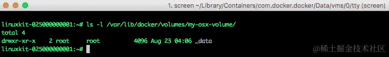 ls -l /var/lib/docker/volumes/my-osx**-volume** # The directory exists and you will see the actual Mountpoint sub folder "_data"