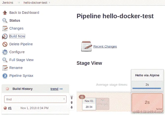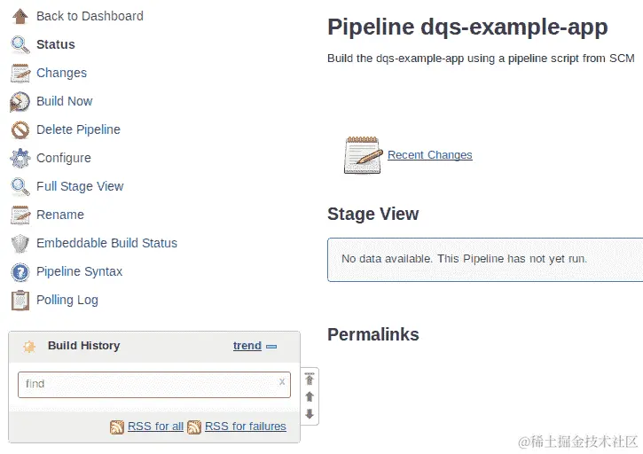 这是目前所需的所有配置。其他一切都已经在我们的源文件中设置好了,它们将从我们的应用程序存储库中拉取。配置所需做的就是点击保存按钮。回到作业页面,我们已经准备好执行我们的第一个构建。在我们的示例中,新创建的作业屏幕看起来像这样: