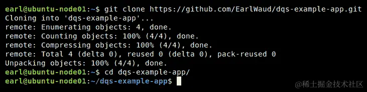 Cloning repository https://github.com/EarlWaud/dqs-example-app.git