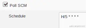 我们将设置 Jenkins 作业,每五分钟轮询 GitHub 仓库,以查找主分支的更改。有更好的选项,可以在仓库更改时触发构建作业,而不是定期轮询,但为了简单起见,我们将只使用轮询方法。因此,请滚动到作业配置的“构建触发器”部分,并选中“轮询 SCM”。然后在计划中输入值H/5 * * * *: