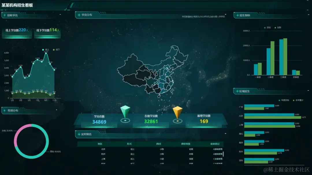 本期为大家推荐DataEase v2版本中4款精美的教育行业数据大屏模板。