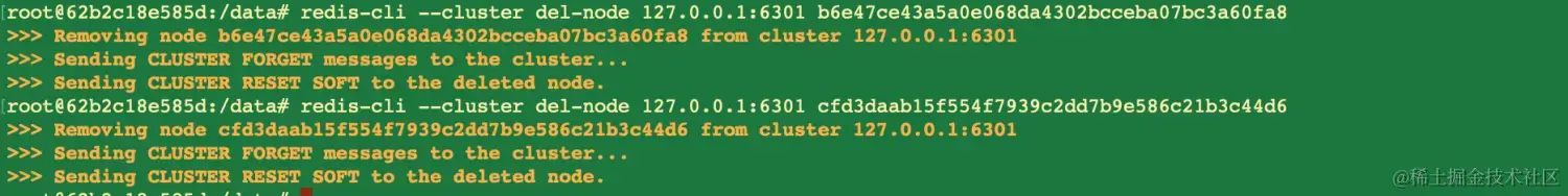 redis-cli --cluster del-node 127.0.0.1:6301 b6e47ce43a5a0e068da4302bcceba07bc3a60fa8