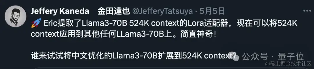背后是一个LoRA,从扩展好上下文的Llama 3 70B Instruct微调版本中提取出来,文件只有800mb。