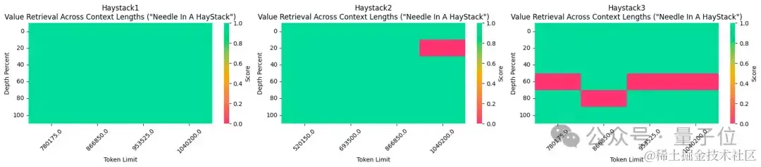 长文本检索性能评估中,只在最难的版本中,当“针”藏在文本中间部分时容易出错。