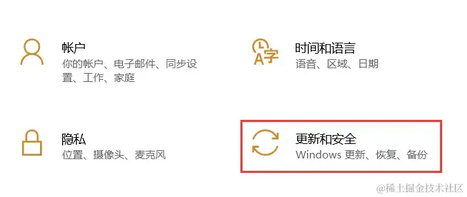 第一步: 在Windows系统中,点击 “开始” 菜单,在设置界面中,点击 “更新和安全” 选项。