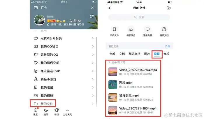 步骤1:在手机QQ上点击**【设置】,打开【我的文件】**。