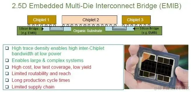 然而,EMIB(嵌入式多芯片互连桥接)技术存在一系列问题,包括生产周期长、良率低、有限的覆盖范围和布线能力,其供应链仅有英特尔这一家公司,它在当今先进半导体领域的声誉欠佳。公平地说,虽然英特尔正在逐步恢复正轨,但尚未达到预期水平。