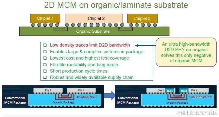 这使得Eliyan提出的NuLink技术成为了一种改进的2D多芯片模块(MCM)工艺: