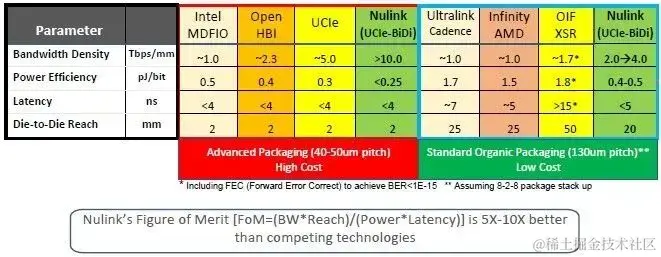 Nvidia的NVLink目前用于将Blackwell GPU复杂结构上的芯片组“粘”在一起,但以上表格并未列出;同样地,Intel的XeLink用于将“Ponte Vecchio”Max系列GPU上的GPU芯片组“粘”在一起,也未列入表格。与UCI-Express不同,NuLink PHY是双向的,这意味着,可以使用与UCI-Express相同数量或更多的导线,但能够实现UCI-Express的两倍或更多的带宽。
