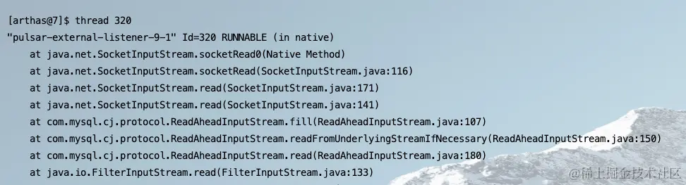 可以知道 pulsar 客户端在其中使用的是 pulsar-打头的线程名称,所以这样就列出了我们需要重点关注的线程。