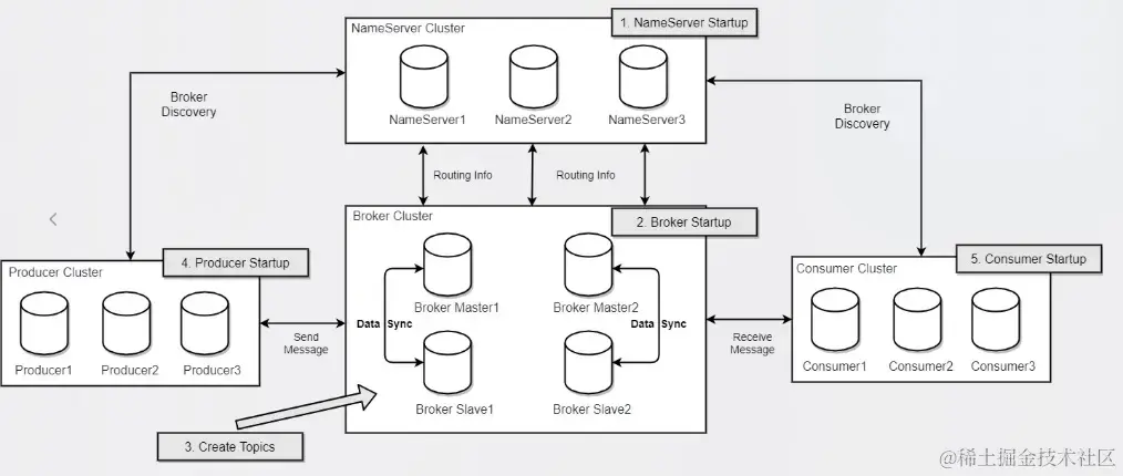 RocketMQ 官方推荐的部署结构如上图所示,主要分为 NameServer、Broker、Producer、Consumer 四种角色