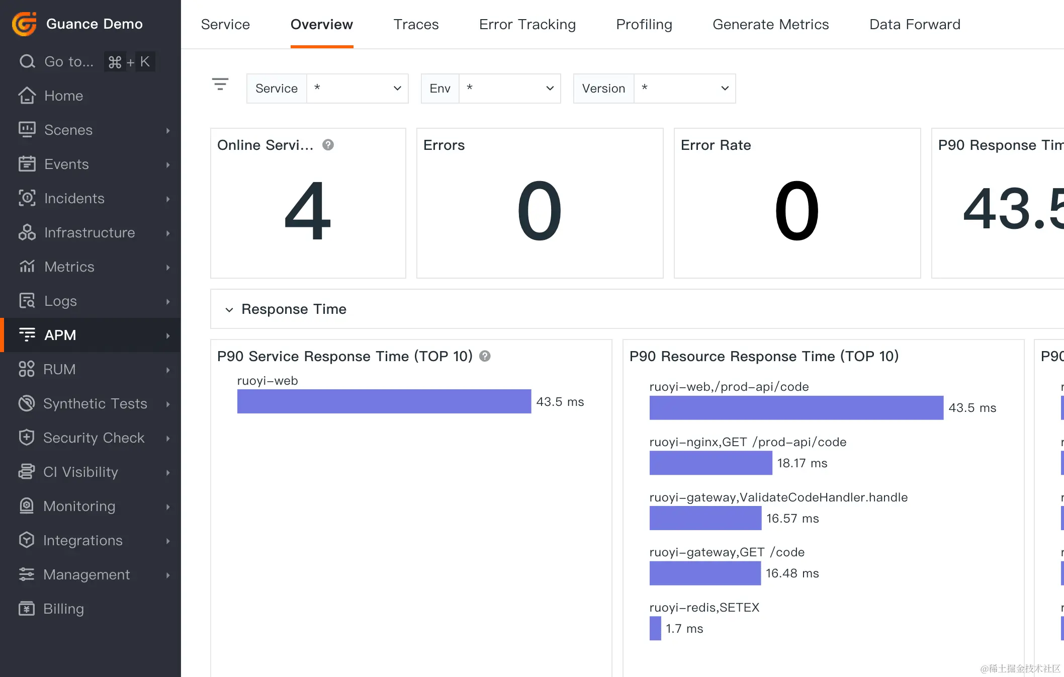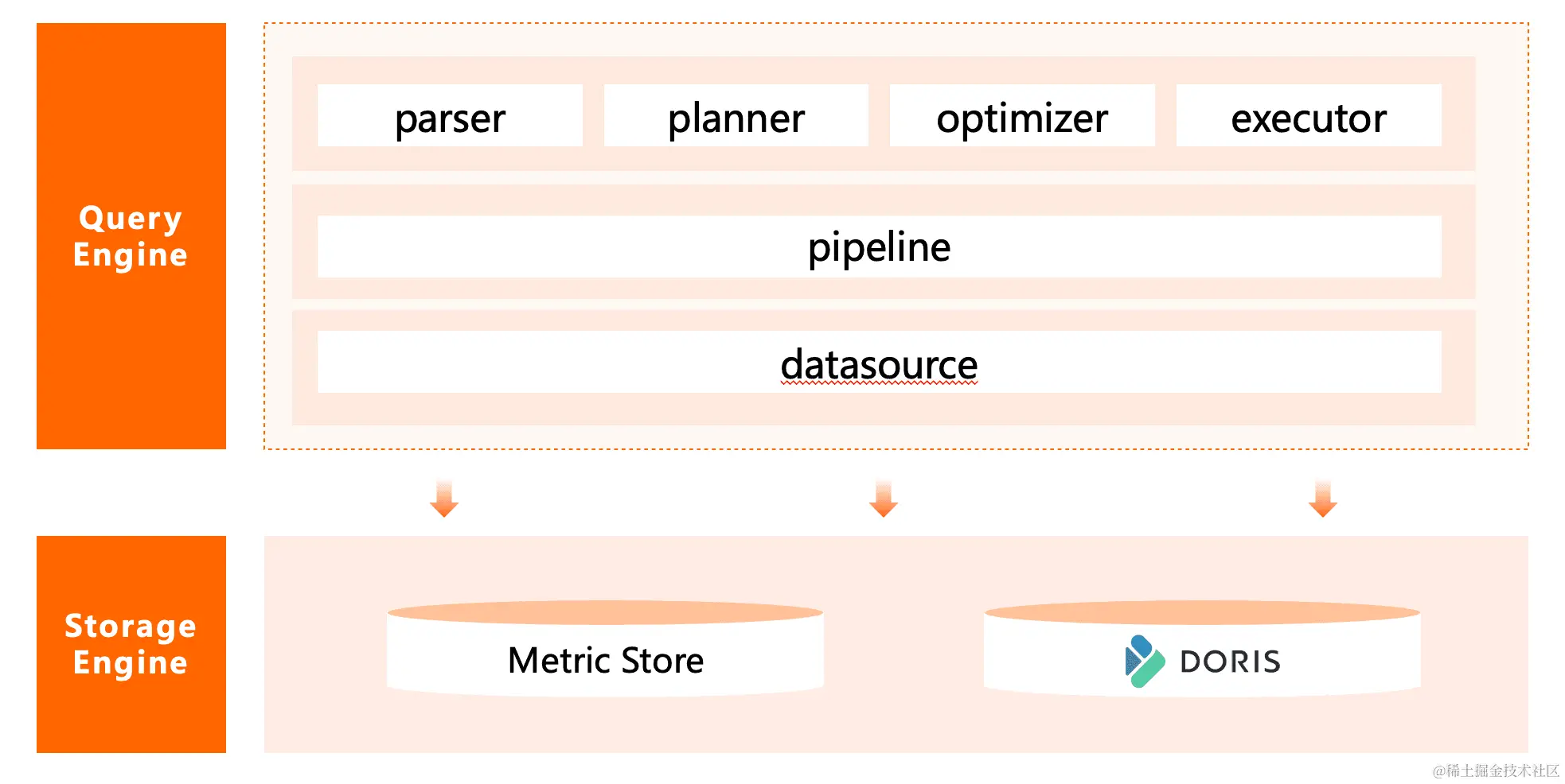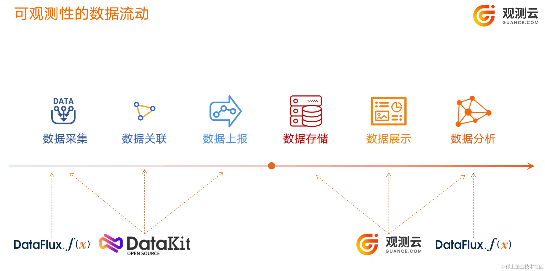 - 在数据存储端,通过自研 GuanceDB 数据库,降低数据存储成本,提升数据查询性能;