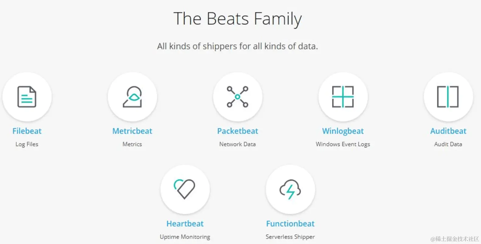 ELK 为日志采集提供了丰富的 Agent 矩阵,方便用户针对不同采集场景进行数据收集: