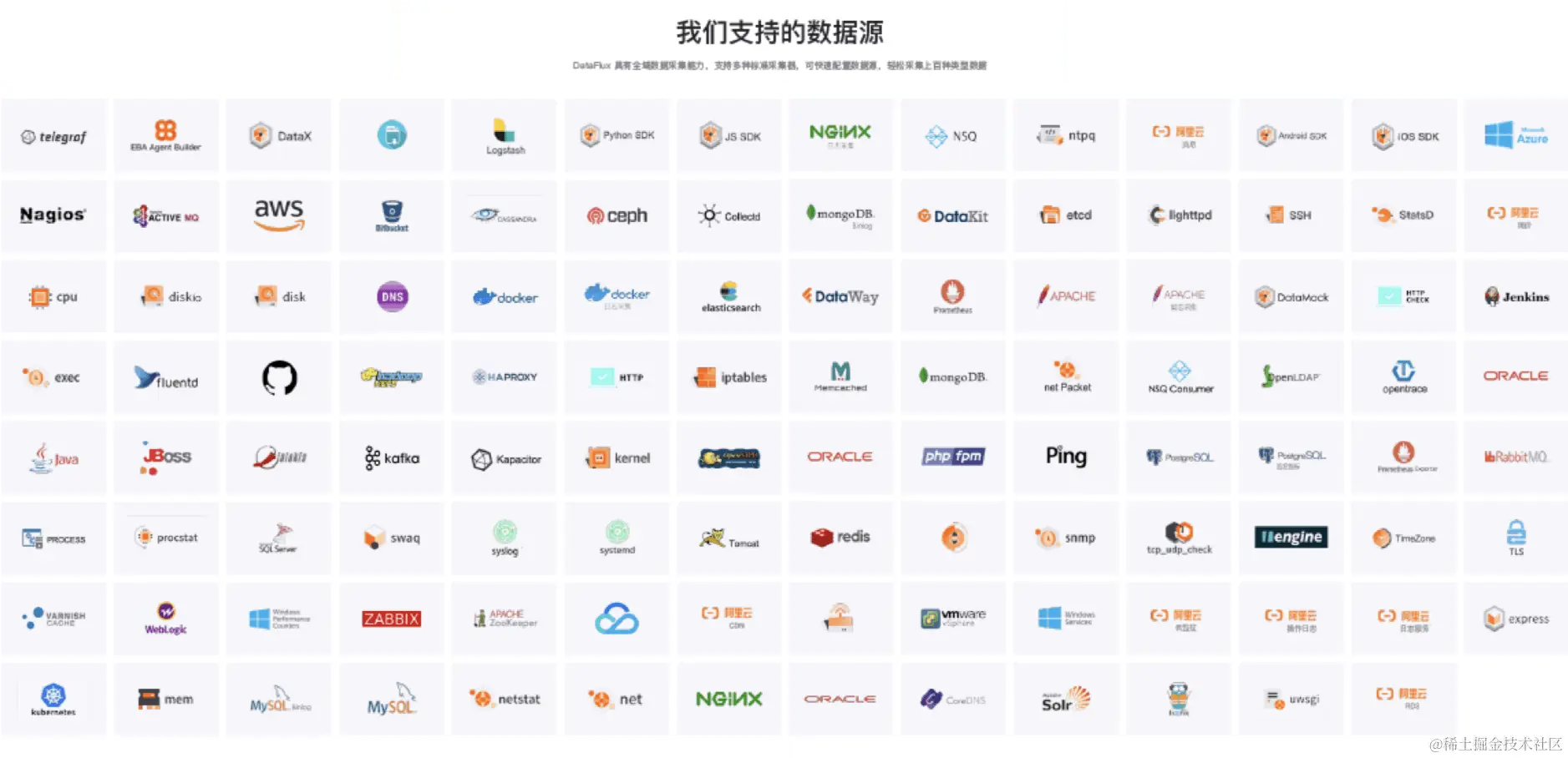 DataKit 是一款开源、一体式的数据集成 Agent ,它提供全平台操作系统(Linux/Windows/macOS)支持,拥有全面数据采集能力,涵盖主机、容器、中间件、Tracing、日志以及安全巡检等各种场景。用户只需要配置一个 Agent,并按需打开不同的数据接收端 (inputs),即可方便的实现指标、网络、日志、应用链路、RUM 等数据的收集。为适配更多用户的使用场合,观测云对内置的数据接收端 (inputs) 进行了预置,超过 400+ 配置模板方便用户快速构建对目标系统的数据采集,配合可视化端配套的仪表板模板,实现采集到展现的开箱即用效果。
