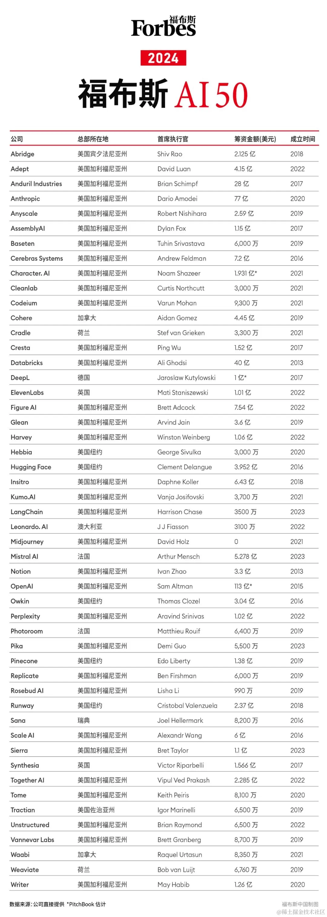 7. 2024年福布斯AI 50榜单,全球最有前途的50家AI创业公司