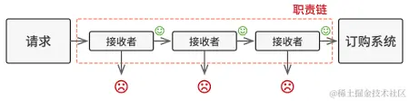 - 将请求的发送者和接收者解耦,将多个对象连成一条链,并沿着这条链传递请求,直到有一个对象处理它为止。
