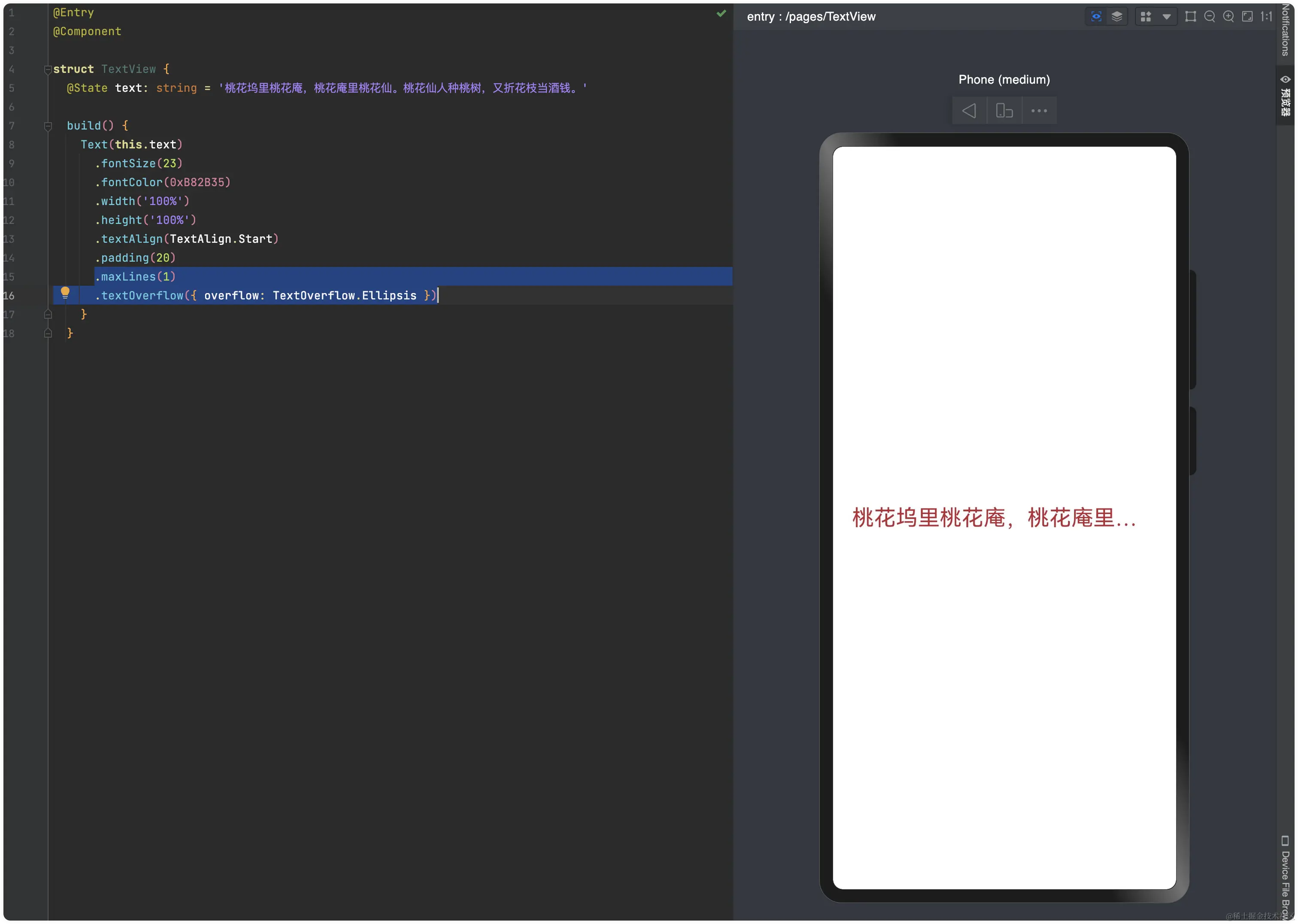 .textOverflow({ overflow: TextOverflow.Ellipsis })