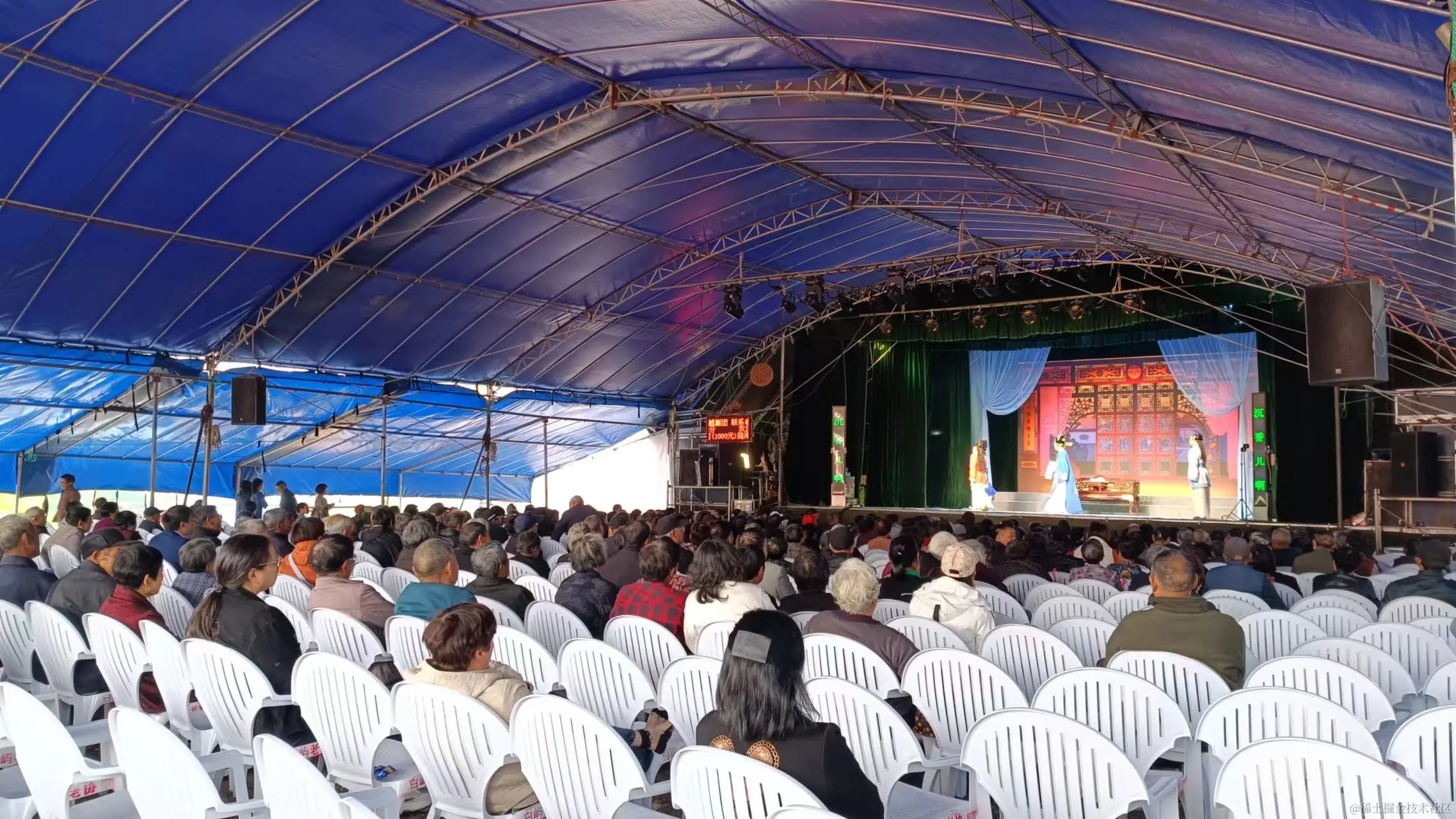 离开咖啡店继续往前,经过塔头旺村附近,路边突然热闹起来,竟然有庙会,停车观看,好多年没有见过这个场景了,戏台上正在唱戏,戏台下坐满了人,戏台外的道路两边摆满了小摊,卖了些玩具和小吃,一下将我拉回到了二十几年前,奶奶带着我去赶庙会到场景,场景大都一样,不一样的是现在的设备更为先进,也不用观众自己带凳子过来了,跟卖小吃的大哥简单聊了聊,当地方言听不太懂,大概了解到庙会由村民捐助,每隔几年会有一次,唱大戏,连唱5天。台上演绎的越剧,听不太懂,旁边还有字幕,确实先进不少