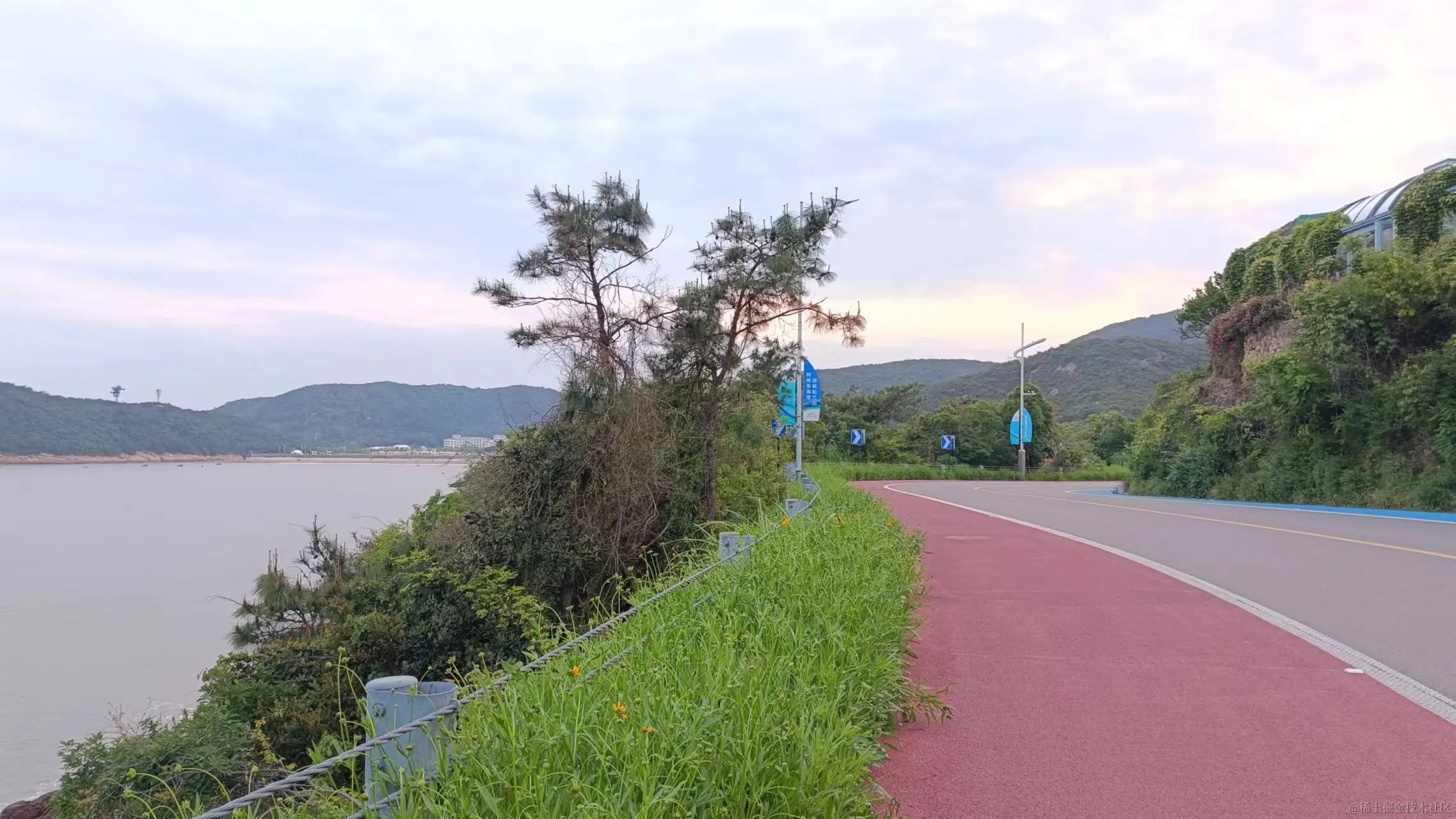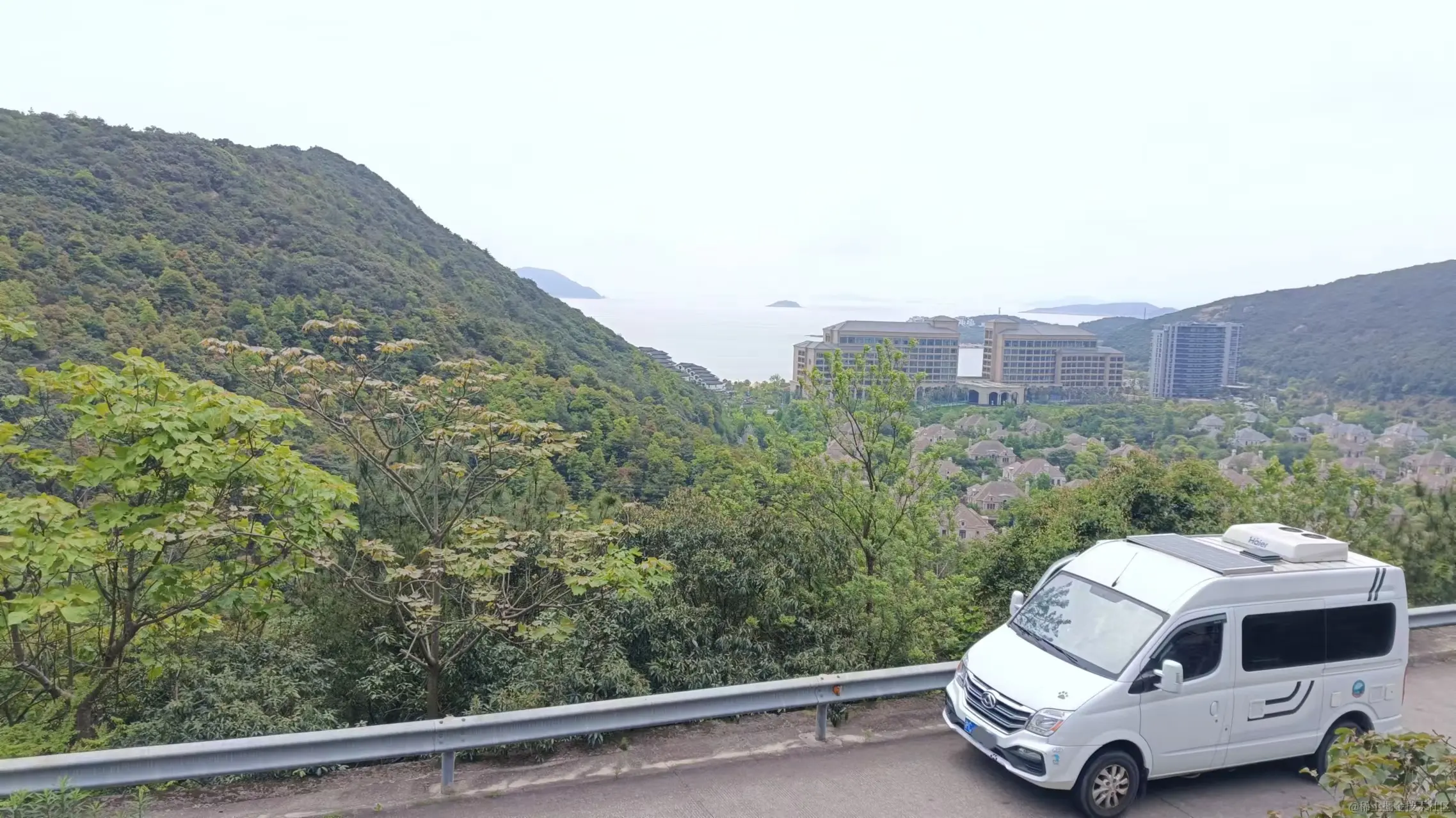 8点多叫老婆起床,继续出发,开启今天的行程,过喜来登酒店不远的丁字路口,往左走是沿海公路,昨天已经跑过,白天肯定有管制过不去,那就往右,经过弥陀净寺一路向前是一段山路,视野开阔,能远眺大海,此时也才发现在酒店的对面是一片别墅