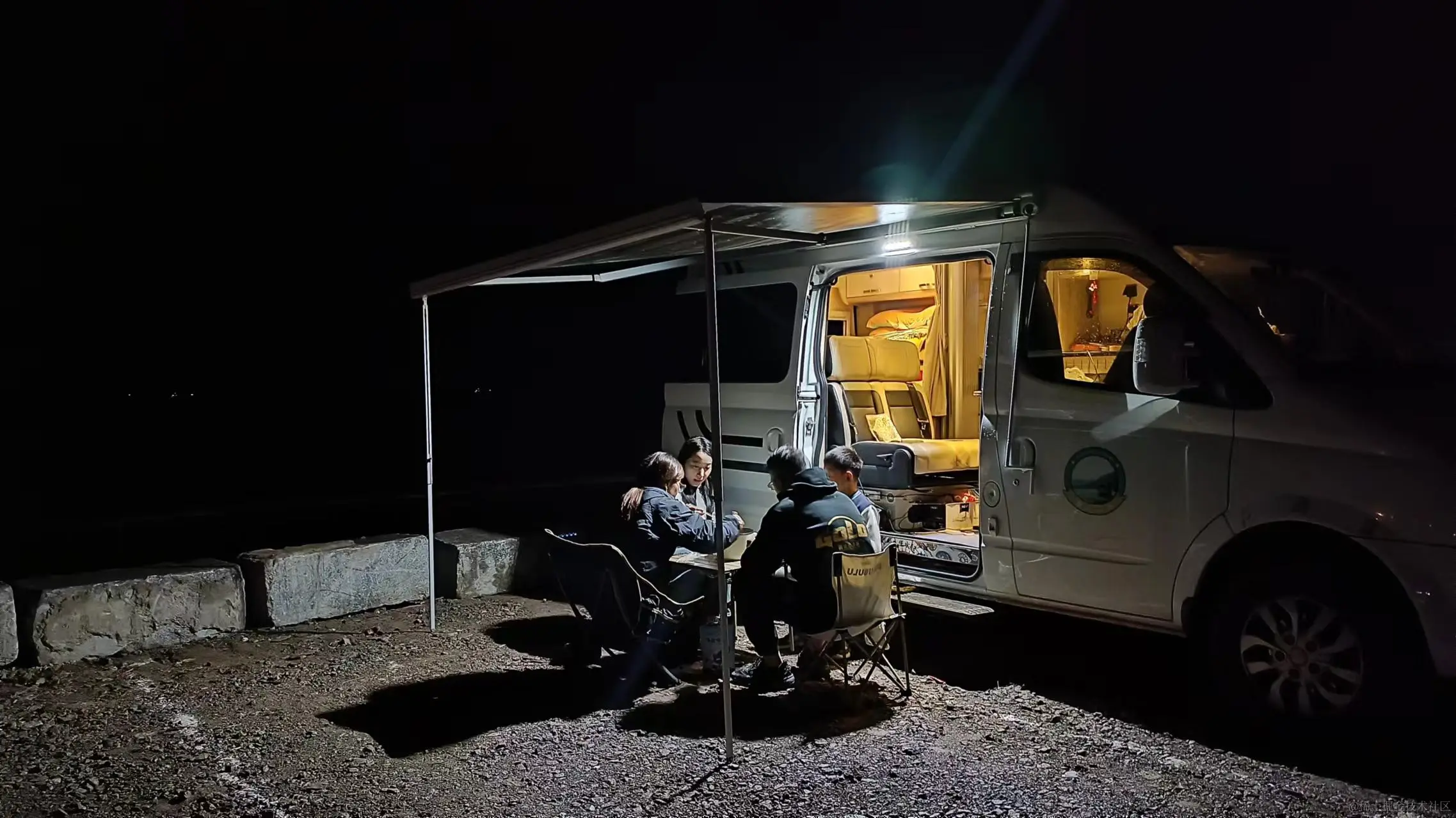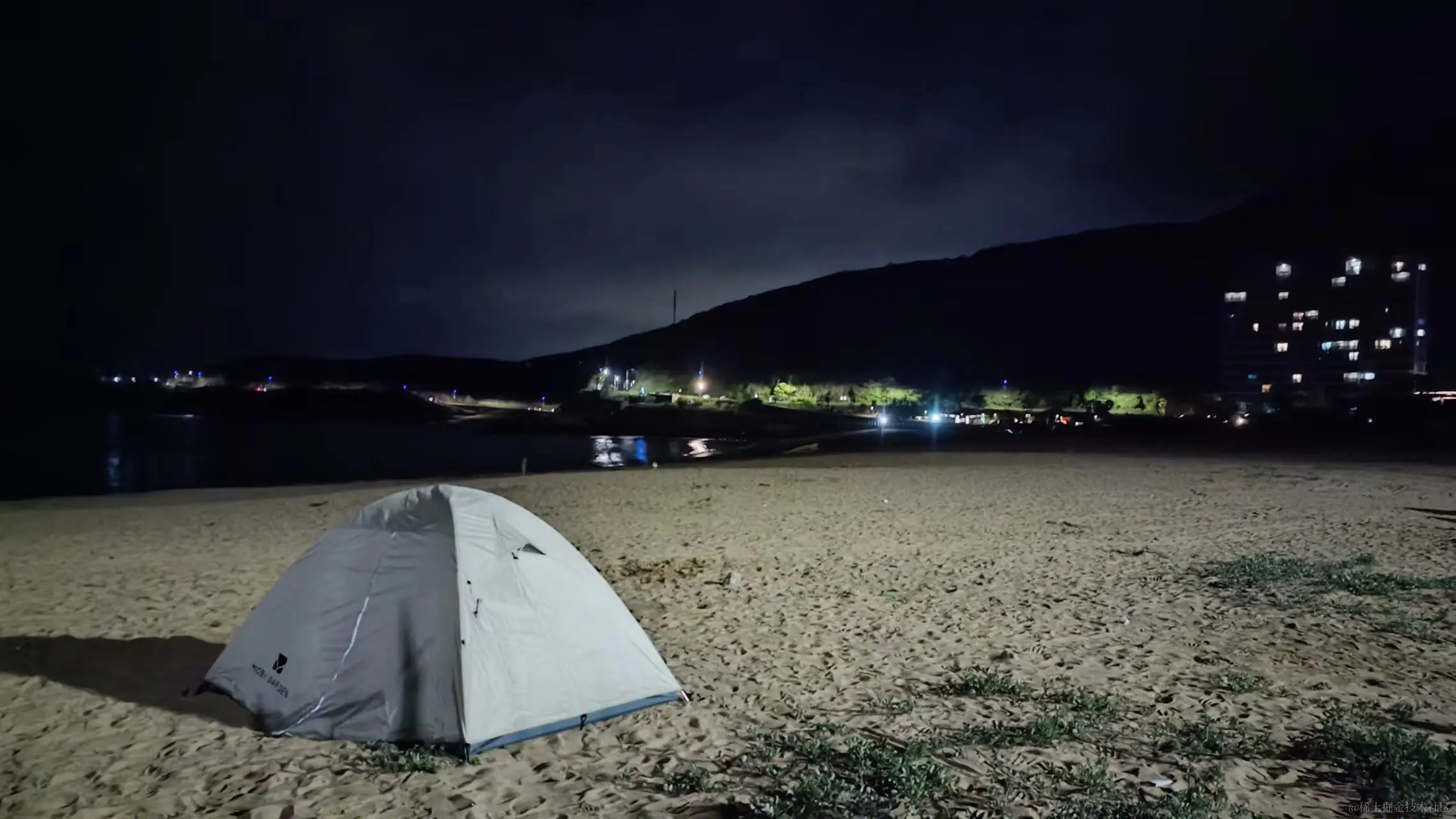 天色渐暗,回到车上,此时刚刚7点,管制交通的保安大叔看我们等了这么久,也已经天黑了,就把我们放了进去,继续自驾完了度假区的剩余的路程,可惜晚上视线不好,所有景点不能一一打卡了。入夜,我们回到了白沙湾沙滩,在沙滩上支起了帐篷,今夜听着海浪声入眠