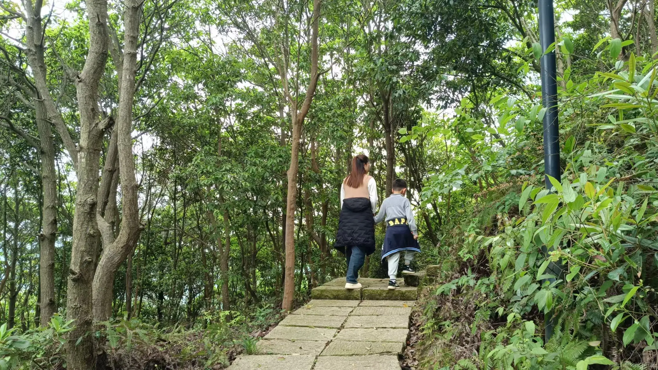 天气转好,出了太阳,十分温和,我们时间充足,小朋友也喜欢爬山,步云坊往上才是龙山公园的精华,完全没有人,就我们一家三口,上山步道是一块块整齐的青石板铺成的,生态极好,经常看到旁边的草丛里有蜥蜴等小动物快速爬过,或是我们突然的闯入惊动了原本安安静静晒太阳的他们