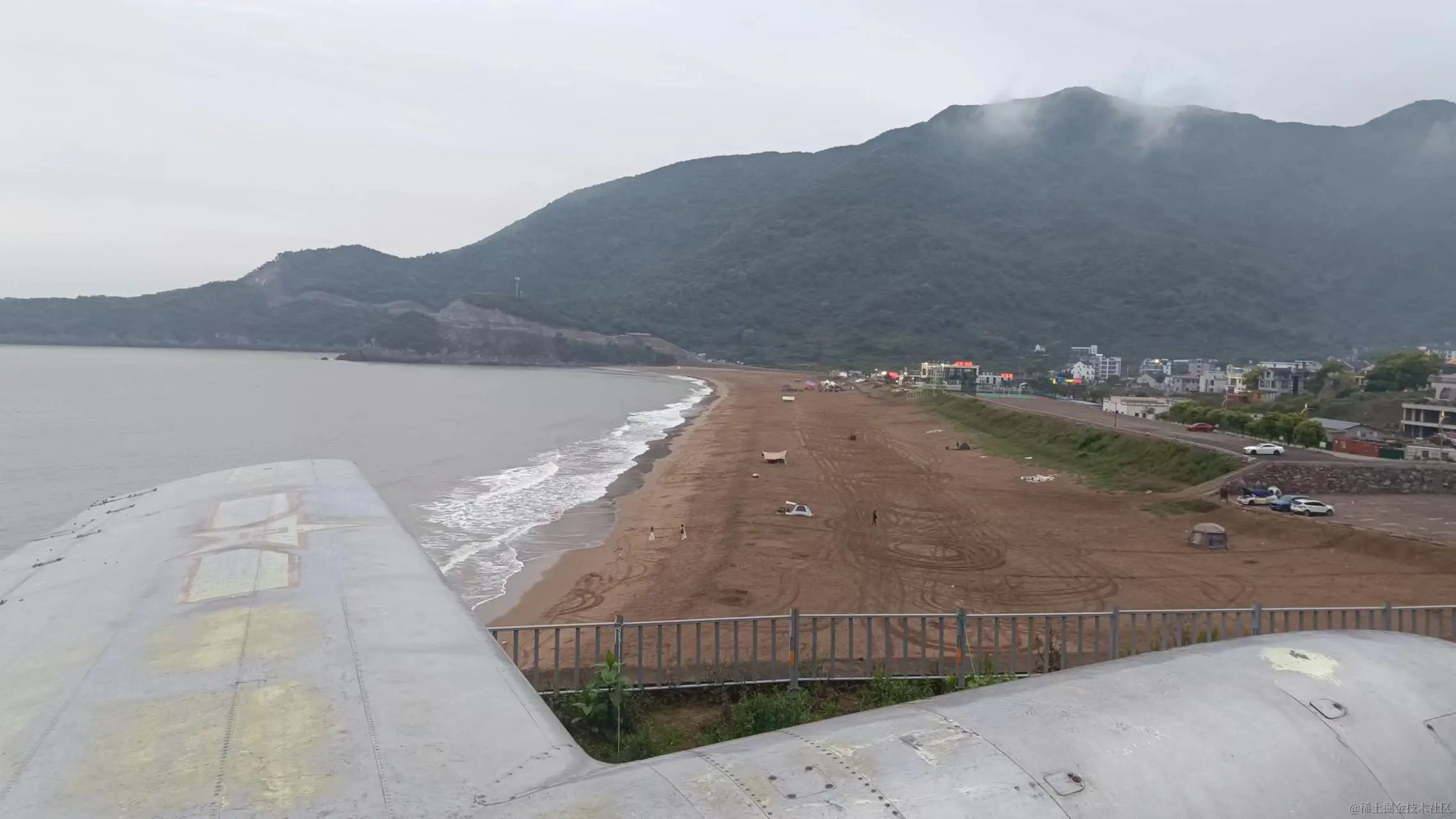 大沙村的位置很好,配套也较为完善,村子里有许多民宿,紧挨大沙沙滩旁边有饭店和超市,看得出若天气好则会有很多的游客,而今天天气不好,就鲜有游客了,这里不收门票,可以扎帐篷露营,这里的海浪很大,一个接一个拍打在岸上,半山腰有一架供拍照和展示的战斗机成了众多网红们的打卡点,不得不说位置很好,即便不是专业摄影师,也能与这架战斗机拍出好看的照片