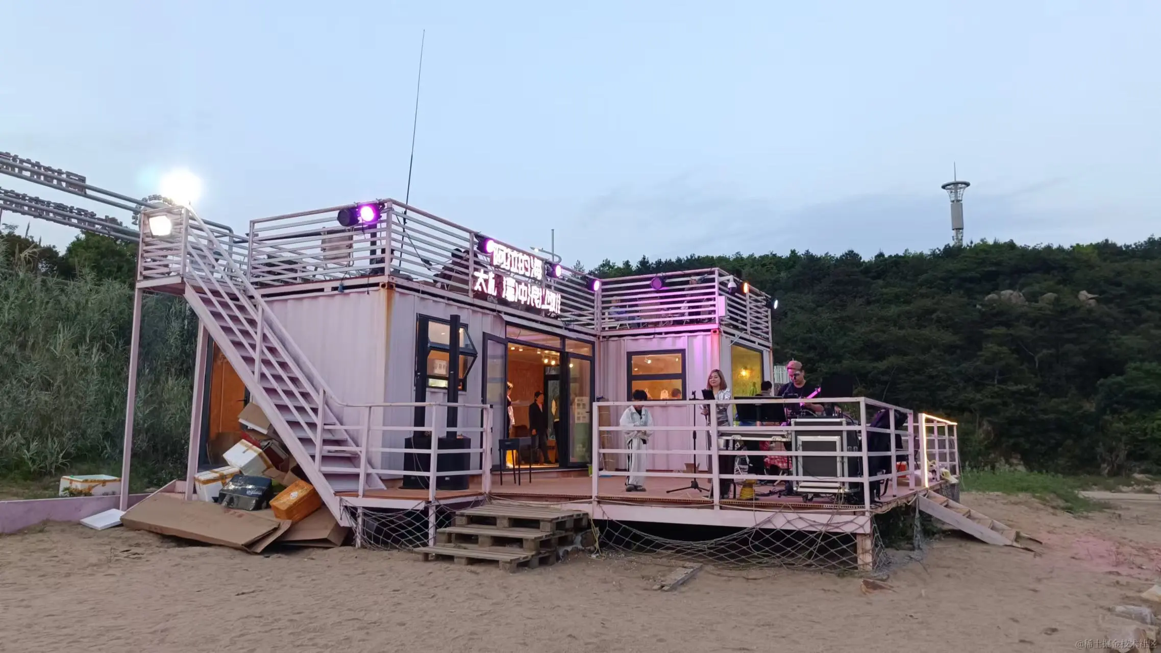 这片沙滩上有提供烧烤食材,也有驻唱,歌声柔美,在一首首英文歌曲里,仿佛有到了海外的感觉,很有情调。坐在大海边烤肉啤酒,吹吹海风,听听歌声,有钱人的生活,惬意呀