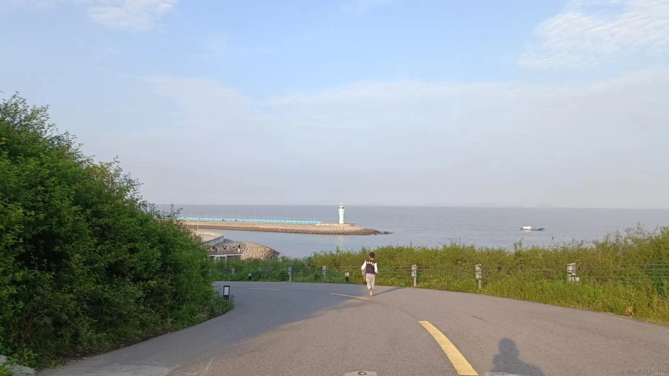 下沙沙滩沙质细腻,比较干净,不收门票,但人挺多,沙滩边上有一排商业街,即便是在五一假期期间看上去也是生意惨淡。继续往前沿海边自驾,风景宜人,美不胜收,沿途有许多大大小小的沙滩,寻一处人少的扎上帐篷呆上一天也是十分舒服,经过亚帆中心,这里是2022年亚运会帆板、帆船竞赛基地,由亚运村、观景平台、陆域操作平台、港池、泊位、比赛海域等组成,配套齐全。过营地上山路左侧有一条小路,拐进去风景极佳,尤其是一段坡度较陡的下坡路,站在上边往下看,远处的灯塔、大海和帆船与这条小路浑然一体,视觉效果极佳
