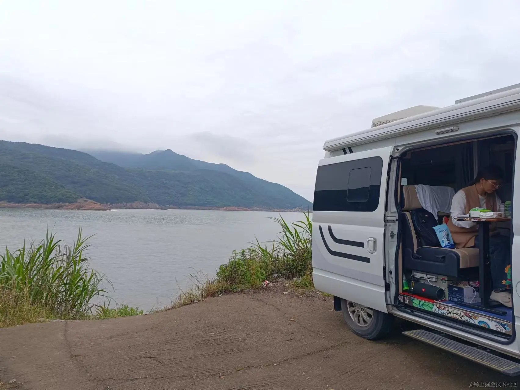 道路的尽头就是海,我们把车停在了道路的尽头,老婆有点着急的工作要做,即便是加班也要在风景里,撑起桌子,打开电脑,关上车门,煮一壶茶,放上轻音乐,加班似乎也没有那么讨厌了