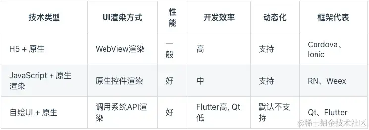 混合应用的优点是:动态内容可以用 H5 开发,而 H5 是 Web 技术栈,Web 技术栈生态开放且社区资源丰富,整体开发效率高。缺点是性能体验不佳,对于复杂用户界面或动画,WebView 有时会不堪重任。